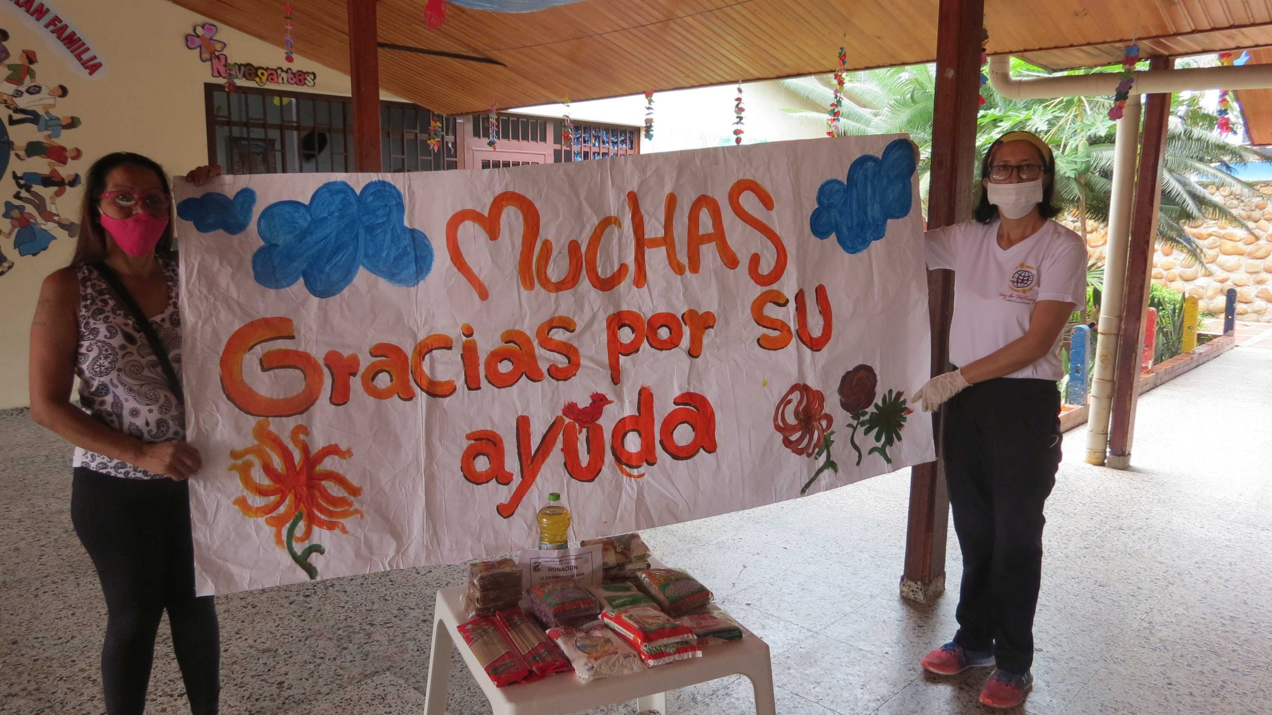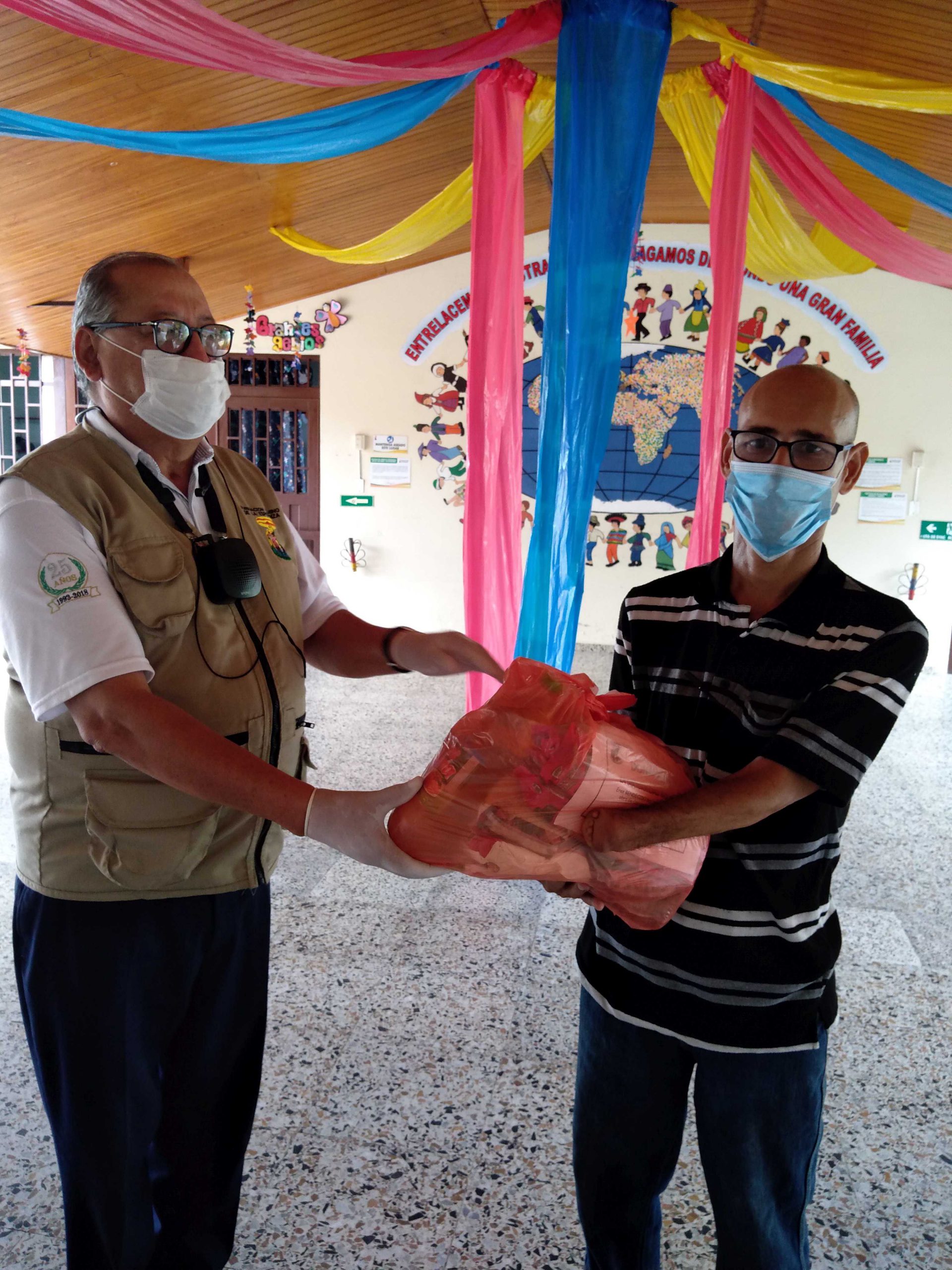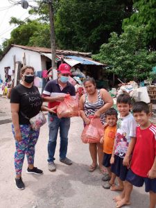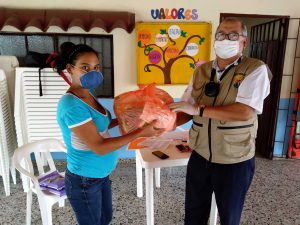 Seit 6. April verteilen unsere Mitarbeiterinnen und Mitarbeiter in Villavicencio Lebensmittelpakete an die Menschen in den Armenvierteln der Stadt. Aufgrund von Ausgangsbeschränkung und Einrichtungsschließungen während der Corona-Pandemie haben unsere Kinder und Jugendlichen nicht mehr die Möglichkeit, regelmäßige Mahlzeiten zu sich zu nehmen.